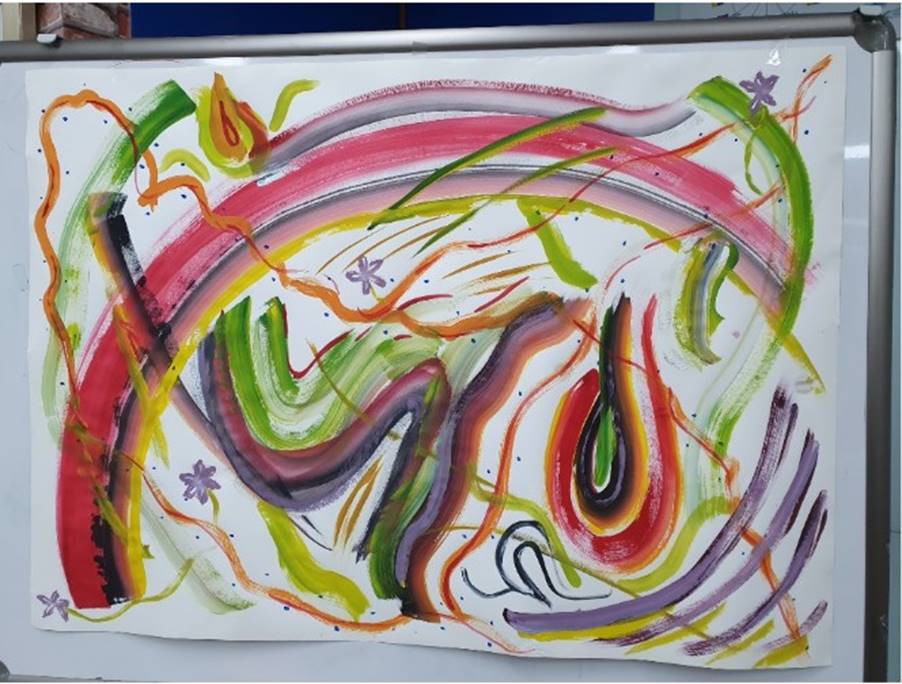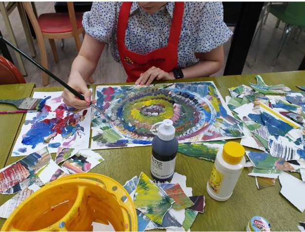 - 컬러에 대한 기초 학습, 예를 들어, 화가의 그림분석이나, 심리적으로 손상이 되어있는 아이들의 그림의 성장과 회복 과정이 어떻게 진행되고 있는지, 그리고 밝은 그림이나, 단색 그림에 대하여서도, 채도 그림이나, 대비가 강조되는 그림, 환경에 영향을 받는 그림, 혼색의 그림등을 구분하여 분석 해보기도 하고, 이를 위해 우리는 직접 그려보고, 색종이를 붙여보고, 물감을 뿌려보기도 하고, 액티브한 페인팅의 경험을 해 보기도 합니다.